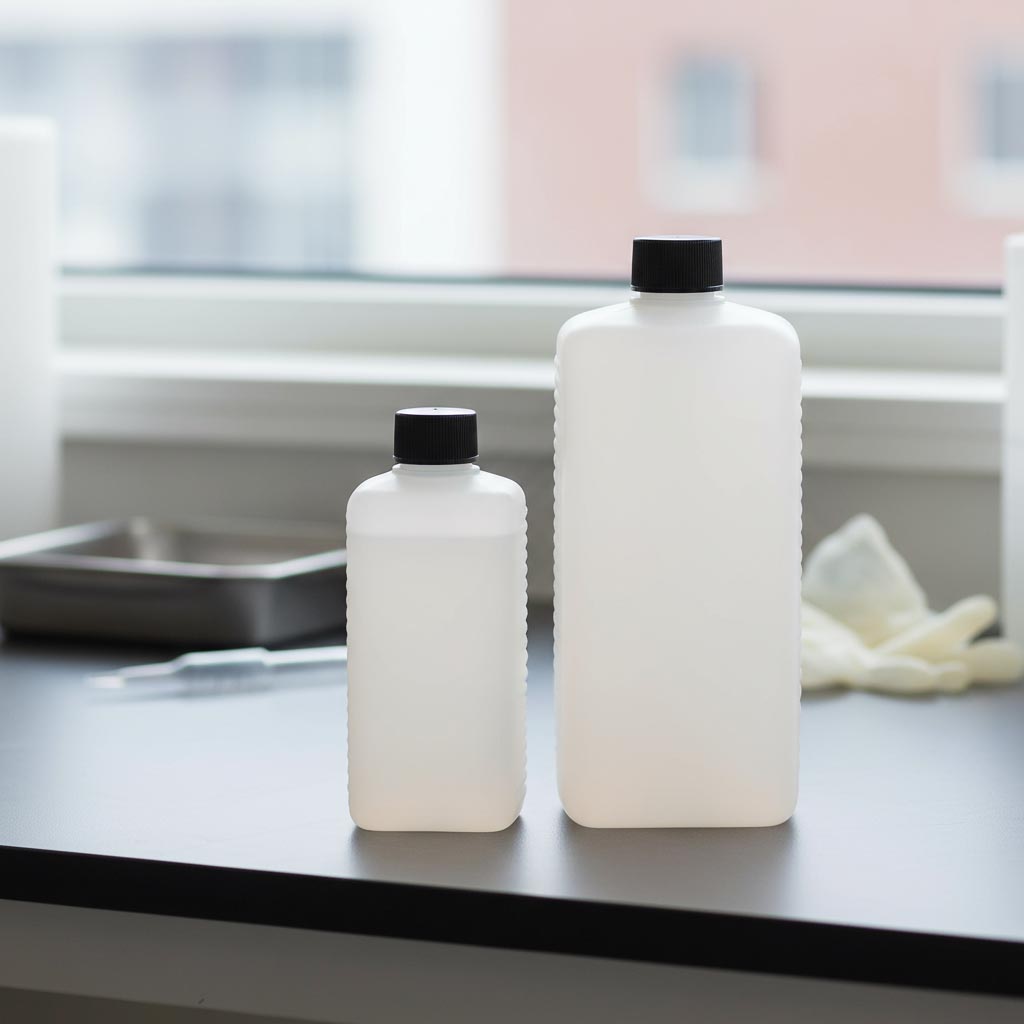 Sticla pătrată din PE de la Flaschenland este o serie robustă și versatilă de recipiente din plastic, caracterizată prin forma sa dreptunghiulară și calitatea superioară a materialului HDPE. Cu o capacitate de 1.000 ml și o gură standardizată DIN 25 EPE, această familie de produse oferă funcționalitate optimă și manevrare facilă. Sticlele canistră sunt fabricate din plastic HDPE de culoare naturală, extrem de rezistent la frig, fiind astfel potrivite și pentru condiții de depozitare exigente. Forma dreptunghiulară permite o depozitare economisitoare de spațiu și o stivuire eficientă. În plus, sticlele sunt compatibile cu mașina de spălat vase, ceea ce asigură o curățare ușoară și reutilizarea. Gura standardizată DIN 25 EPE garantează o închidere sigură și compatibilitate cu capacele și dozatoarele uzuale.