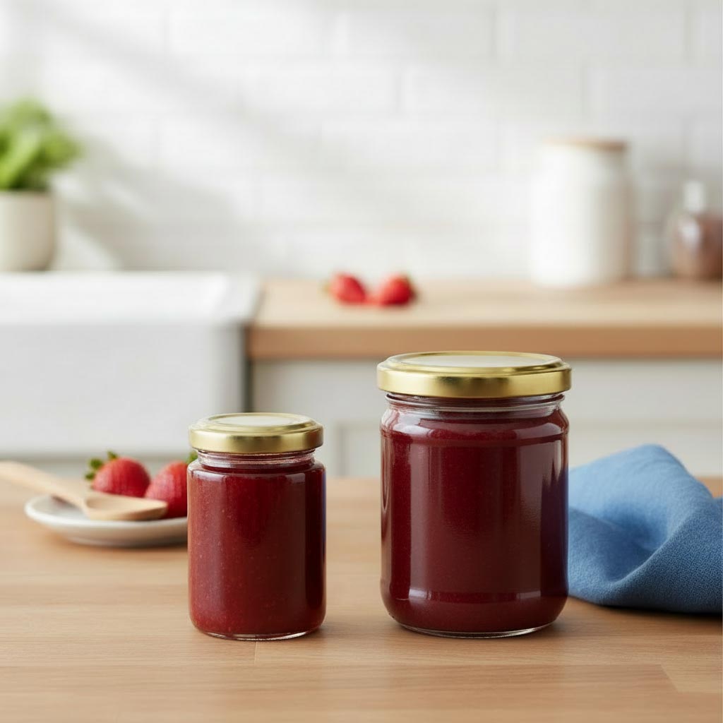 Seria de produse „Borcan rotund” de la Flaschenland include borcane rotunde de înaltă calitate de 110 ml, cu gât cu capac Twist-Off (TO 48), remarcate prin versatilitatea și robustețea lor. Aceste recipiente din sticlă sunt ideale pentru depozitarea și conservarea sigură a alimentelor precum gem, pesto sau alte produse conservate. Borcanele rotunde sunt fabricate din sticlă rezistentă la căldură și frig, fiind compatibile atât cu cuptorul cu microunde, cât și cu cuptorul clasic. Astfel, sunt extrem de flexibile în utilizare și pot fi curățate cu ușurință în mașina de spălat vase. Cu o capacitate de 110 ml și un gât practic cu capac Twist-Off, oferă o închidere sigură și ermetică, care păstrează aroma și prospețimea conținutului.