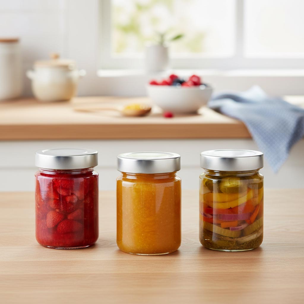 Seria de produse „Borcan rotund Deep Twist Off” de la Flaschenland include recipiente din sticlă de înaltă calitate, versatile, care se remarcă prin construcția robustă și gura practică Deep-Twist-Off (DTO 58). Borcanul rotund de 204 ml „Summertime” este un exemplu de funcționalitate și durabilitate într-un design modern. Aceste recipiente din sticlă sunt fabricate din sticlă rezistentă și oferă o capacitate de 204 ml, fiind ideale pentru depozitarea alimentelor precum mierea, gemul, pesto-ul sau alte conserve. Gura Deep-Twist-Off asigură o etanșare sigură și ermetică, menținând conținutul proaspăt și permițând totodată o deschidere ușoară. Borcanele sunt rezistente la frig, căldură, pot fi folosite în cuptorul cu microunde, în cuptor și sunt compatibile cu mașina de spălat vase.