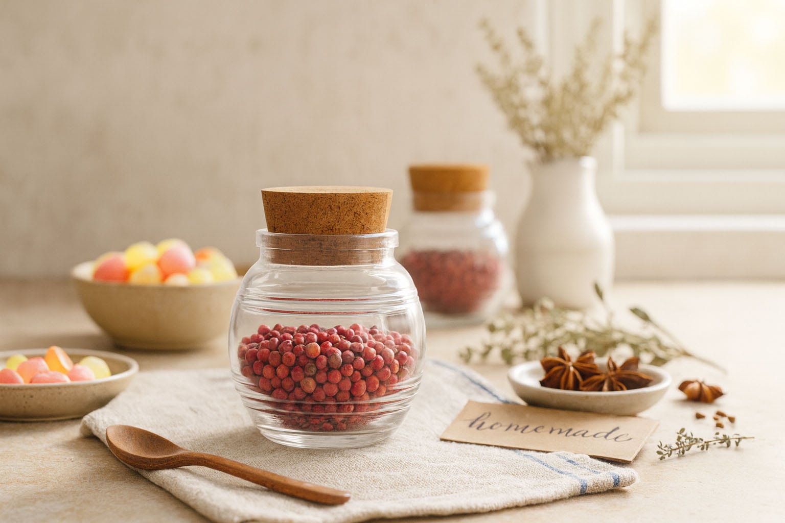 Seria „Jule” îmbină eleganța estetică cu funcționalitatea practică și oferă o soluție stilată pentru depozitarea condimentelor, bomboanelor și altor delicatese fine. Borcanul rotund din plută impresionează prin forma sa ușor rotunjită și prin relieful caracteristic în dungi, care îi conferă o senzație tactilă specială și un farmec nostalgic. Baza rotundă asigură un aspect armonios, în timp ce gura din plută permite o etanșare sigură și naturală. Jule nu este doar un borcan practic pentru depozitare, ci și un element decorativ deosebit, care adaugă accente în orice bucătărie sau pe orice masă.