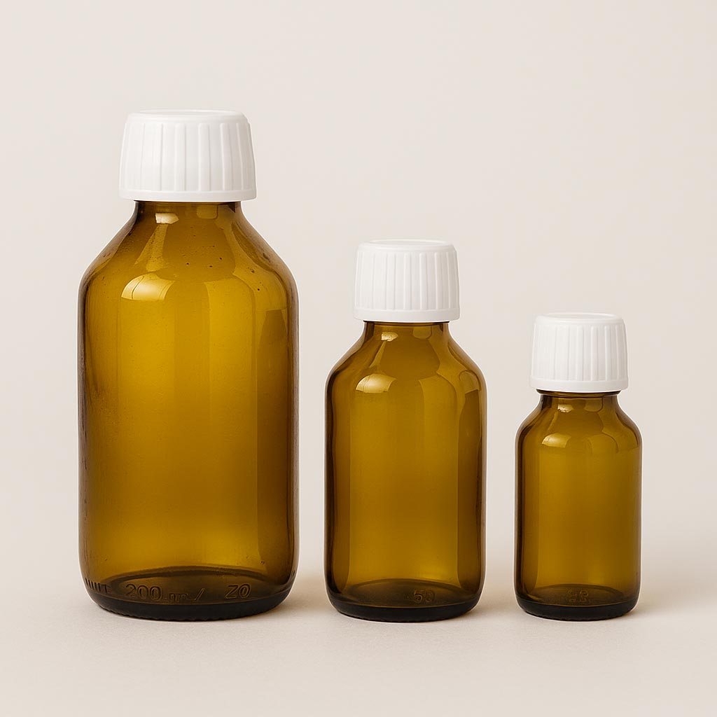 Flaconul maro pentru medicamente combină siguranța funcțională cu un design atemporal și oferă o soluție ideală pentru produsele farmaceutice și cosmetice. Baza sa rotundă asigură un aspect clasic și o stabilitate bună, în timp ce sticla colorată integral oferă o protecție excelentă împotriva luminii și protejează conținutul de influențele externe dăunătoare. Cu un volum cuprins între 50 și 1000 ml, acest flacon este potrivit pentru diverse aplicații. Gura standardizată PP 28 permite o sigilare sigură și poate fi combinată cu capace din gama noastră. Acest flacon de medicamente de înaltă calitate reprezintă protecție, calitate și o prezentare profesională a produsului.