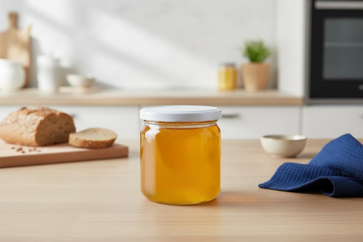 Borcan de miere de 388 ml – transparent, elegant și durabil