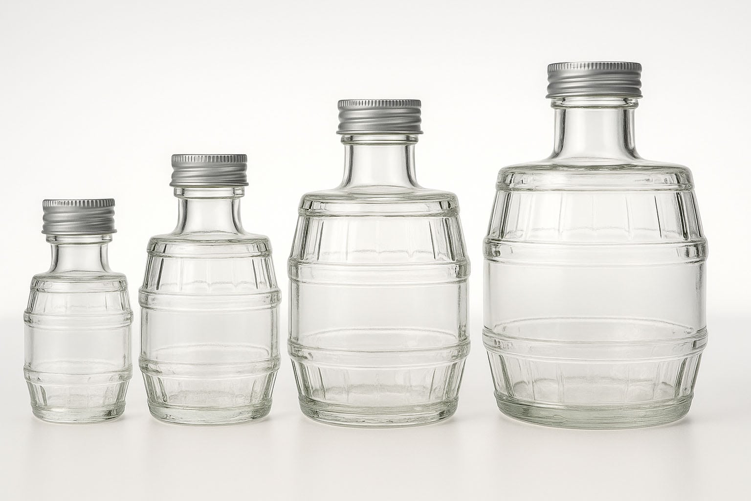Seria „Butoi” combină atenția meșteșugărească pentru detalii cu perfecțiunea funcțională. Inspirată de butoaiele clasice din lemn, această sticlă impresionează printr-un design detaliat al suprafeței, care oferă conținutului său o prezentare autentică și de înaltă calitate. Fabricată în Italia, se remarcă prin calitatea superioară a sticlei și prin posibilitatea de a alege între diferite tipuri de guri – dop de plută sau capac cu filet (PP 18, PP 24, PP 28) – potrivite cerințelor individuale. Cu o capacitate cuprinsă între 50 și 500 ml, seria „Butoi” oferă o modalitate elegantă de a îmbutelia băuturi fine în siguranță și cu un aspect estetic plăcut.