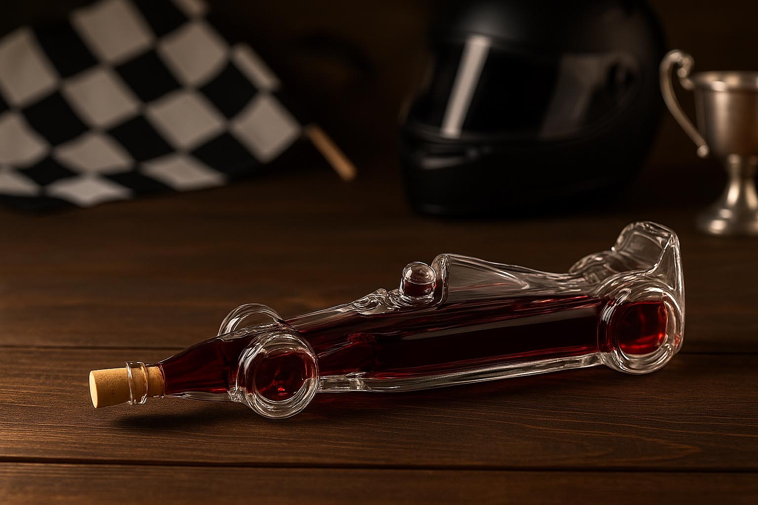 Sticla cu motiv „Mașină de curse” este un punct de atracție deosebit pentru fanii motorsportului și iubitorii de ambalaje elegante. Forma sa detaliată surprinde perfect dinamismul și eleganța unei mașini de curse clasice, făcând-o alegerea ideală pentru băuturi spirtoase speciale, rachiu sau lichioruri. Fabricată din sticlă clară de înaltă calitate, combină un design distinctiv cu o prelucrare de primă clasă. Gura cu dop de plută asigură o sigilare stilată și conferă sticlei o notă nobilă. Fie ca un cadou pentru pasionații de curse sau ca o sticlă de colecție exclusivă – sticla „Mașină de curse” pune în valoare orice băutură cu viteză și stil.