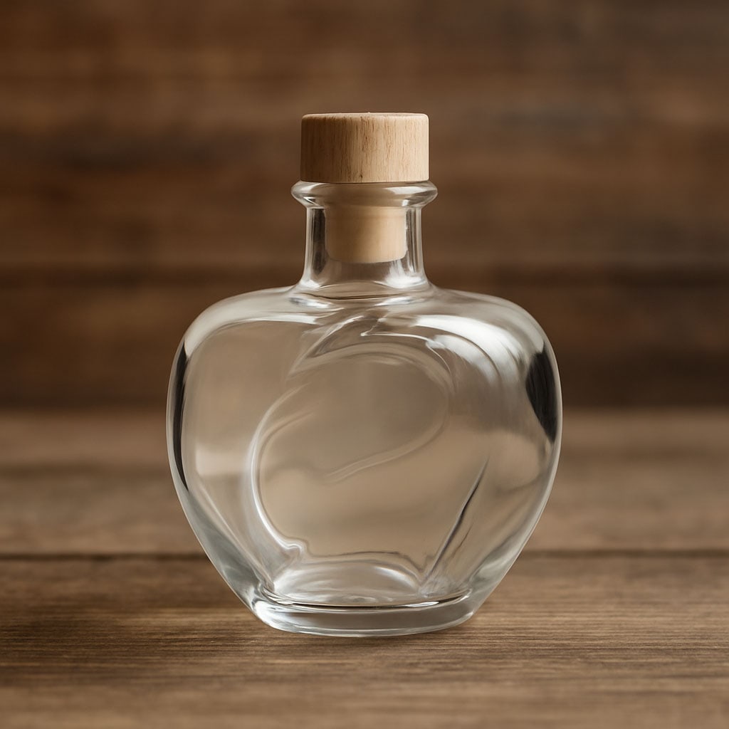 Sticla cu motiv „Măr” impresionează prin designul său unic, în formă de măr, și este alegerea perfectă pentru rachiuuri și lichioruri fine din fructe. Designul său detaliat, realizat din sticlă clară de înaltă calitate, subliniază caracterul natural al conținutului și o transformă într-un adevărat punct de atracție. Gura cu dop de plută asigură o sigilare elegantă și sigură, în timp ce forma armonioasă evidențiază valoarea produsului.