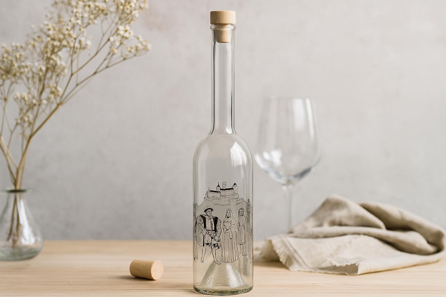 Borcane și sticle Sticlă de sticlă de 500 ml „Opera”, motiv: Vânător, gura: dop