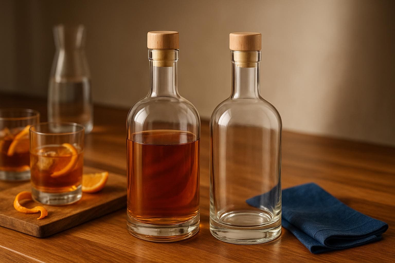 Sticla de design Franco combină măiestria italiană cu eleganța atemporală și oferă o soluție stilată pentru băuturi spirtoase de înaltă calitate, lichioruri, siropuri și alte produse rafinate. Disponibilă în dimensiunile de 500 și 700 ml, aceasta impresionează prin linii clare și o formă armonioasă, care pune în valoare fiecare îmbuteliere în mod perfect. Gura clasică cu dop de plută permite o sigilare sigură și elegantă – capacele potrivite sunt disponibile în sortimentul nostru. Cu finisajul său de înaltă calitate și designul minimalist, Franco este alegerea ideală pentru brandurile care doresc să îmbine exclusivitatea și eleganța într-o singură sticlă.