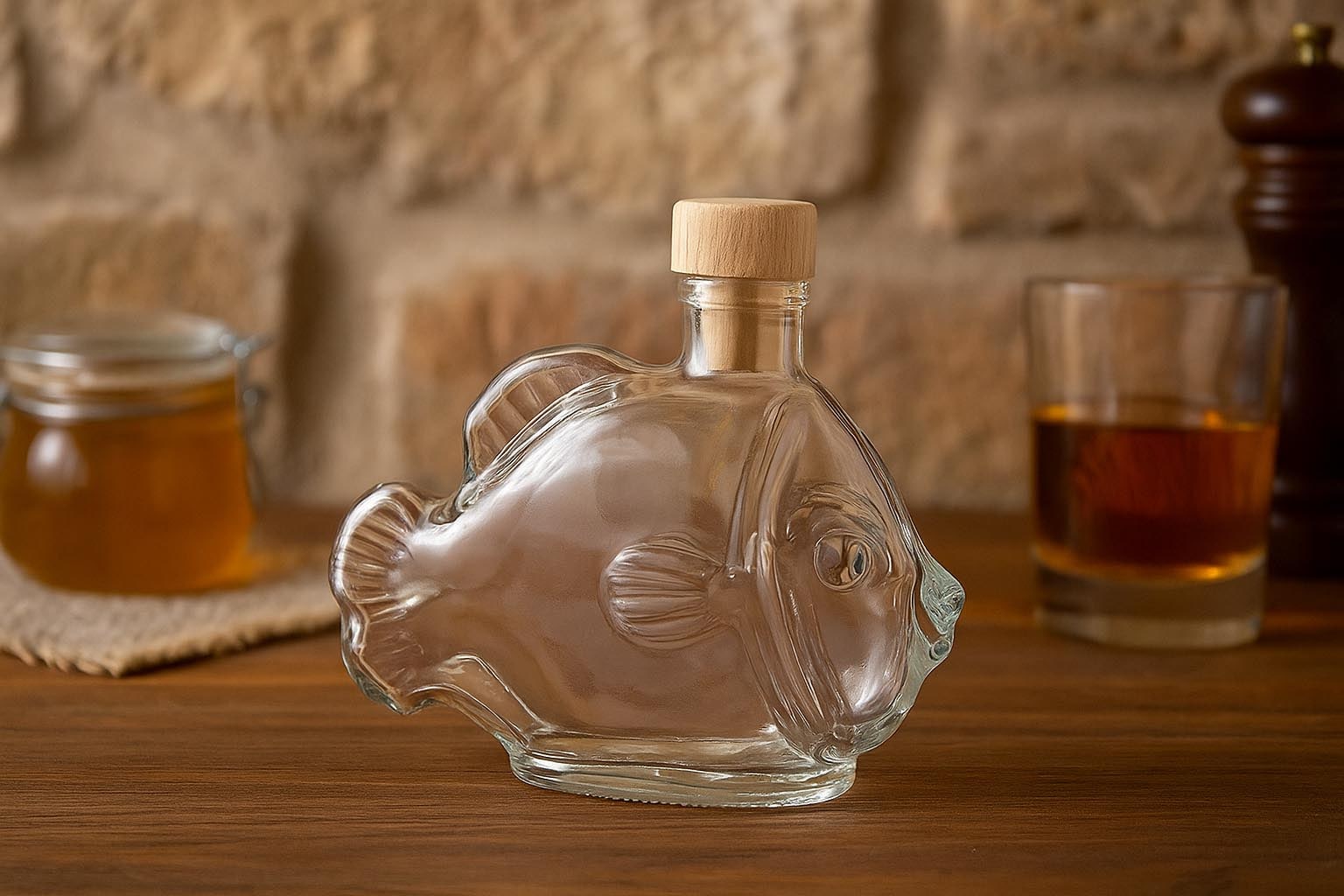 Flaschenland Sticlă de sticlă de 200 ml „Pește”, gura: plută